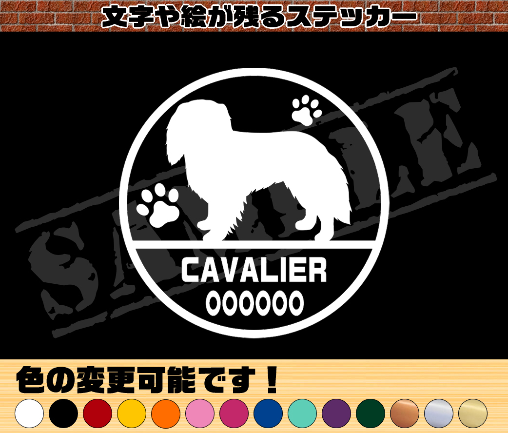 - ★☆シンプル かわいい お名前入り『キャバリア』丸枠わんちゃんステッカー☆★