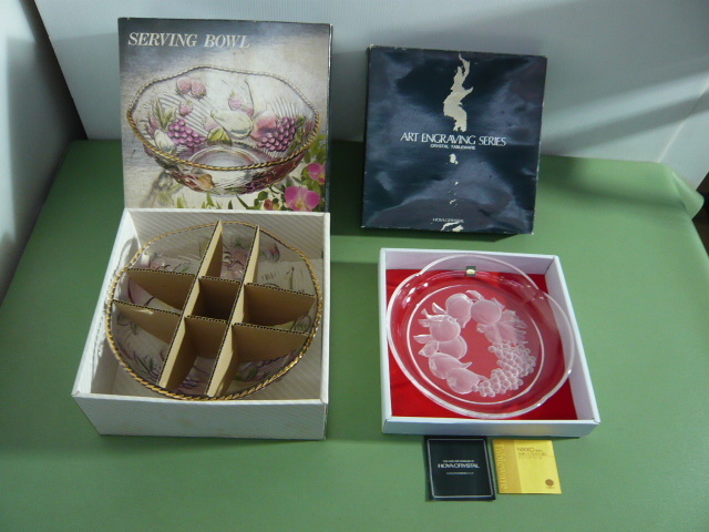 - B446◆石塚硝子 盛鉢 ガラスボウル 大鉢&クリスタル HOYA 果物皿 トレー 2点セット◆未使用保管品◆L