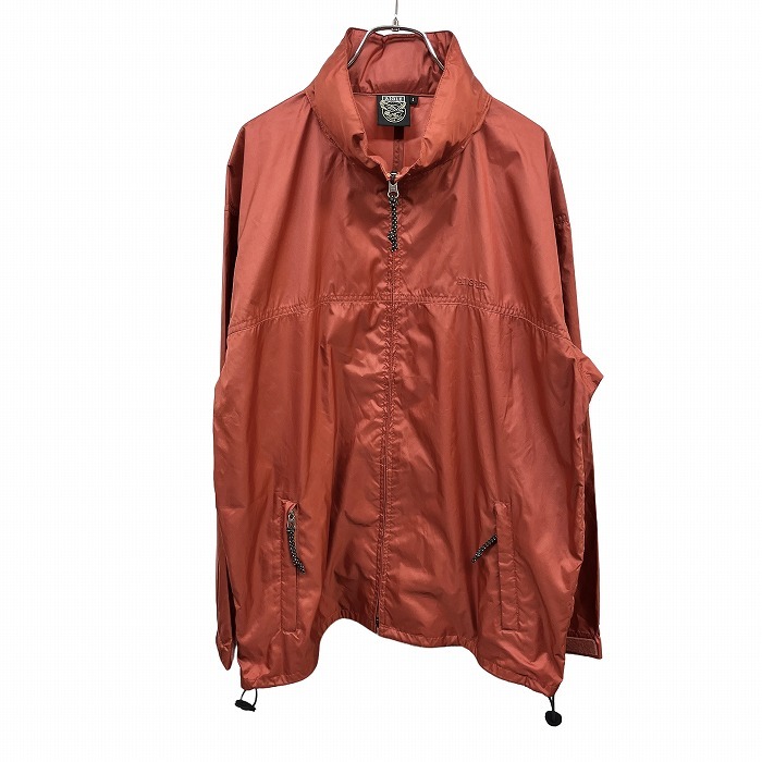> エーグル AIGLE 薄手 ジャケット 裏地無し 隠しフード 長袖 ハイネック ロゴ刺繍 裾に調節ゴム 日本製 ポリ100% L ブラウン 茶 メンズ