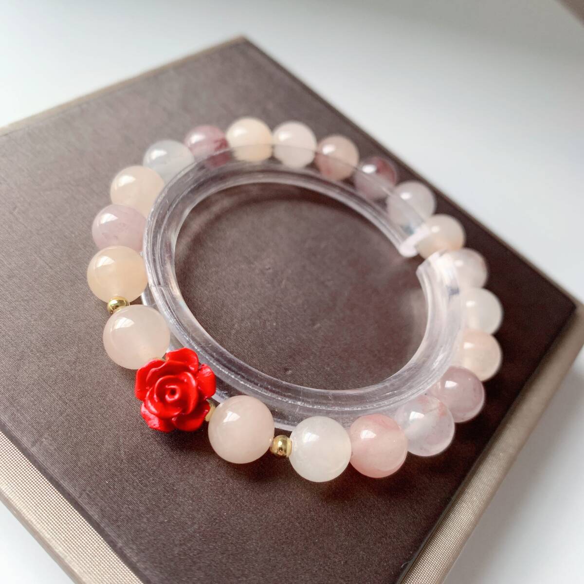 > ◇金糸玉+辰砂(花形)◇ヒスイ◇ブレスレット◇パワーストーン◇天然石◇巾着袋付き◇プレゼントにも028B30902