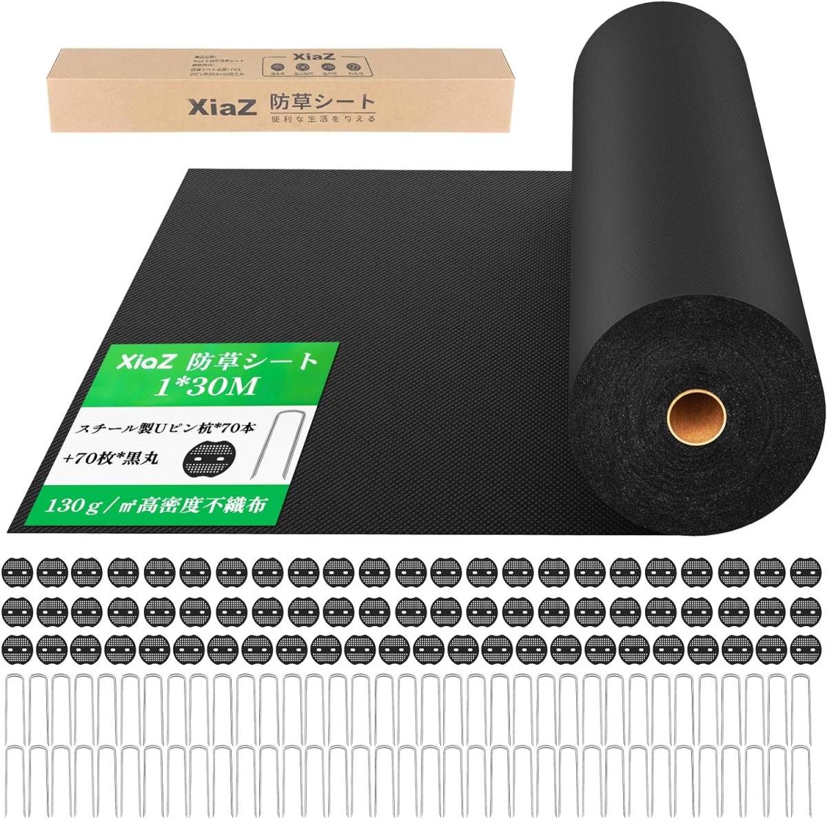 > 【新品】XiaZ 防草シート 1x30m ブラック 高耐久性不織布130g/m2 雑草防止シート 除草シート 厚手 幅1m×長さ30m ピン70本+黒丸70枚セット