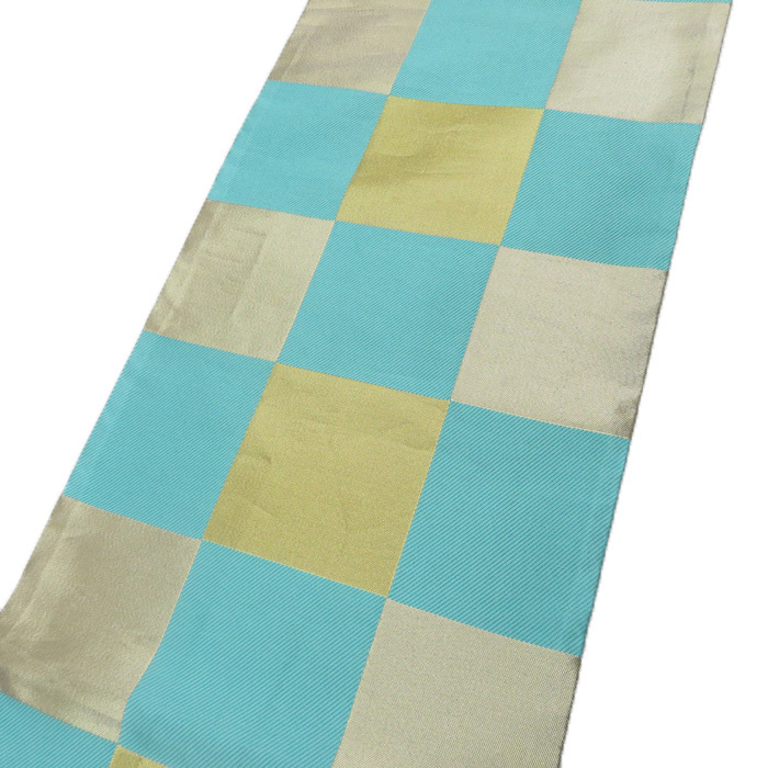 - 【FINAL PRICE】 ★きもの北條★ 振袖用 袋帯 市松模様 リサイクル 成人式 結婚式 結納 パーティー 金 ターコイズブルー A589-9 【中古】