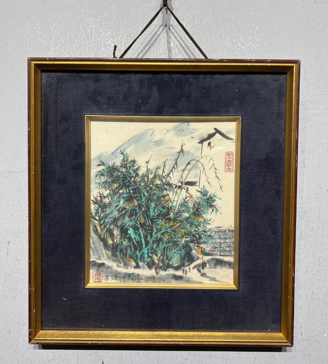 - 古美術 扁額 中国・近現代 呉冠中書 「風景図」 紙本 掛屏 額装 書道 真筆逸品 肉筆保証 極細工 唐物 書画 LT-24240