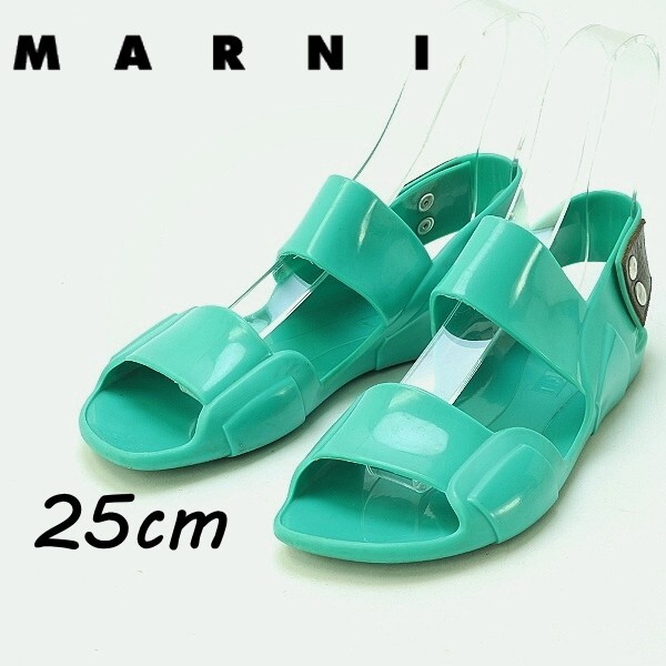 - ◆MARNI マルニ ラバー × レザー フラット サンダル グリーン系 38