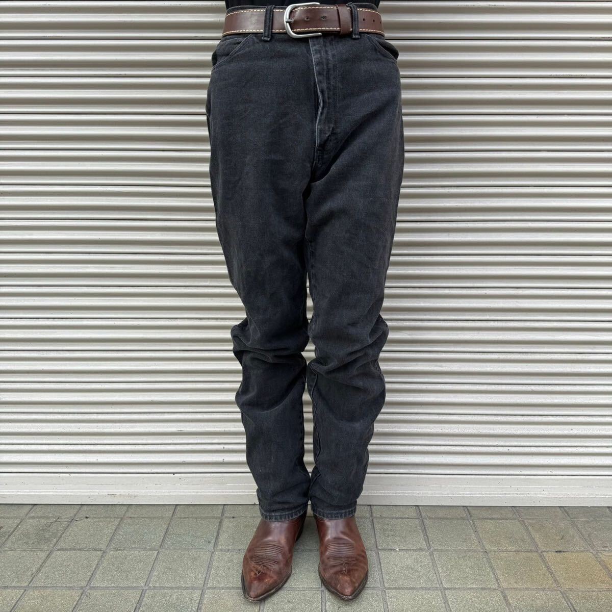 - 90s Wrangler ラングラー 12MWZWK デニムパンツ Black Denim Pants 80s 後染め made in usa ヴィンテージ ブラックデニム USA製 黒 72cm