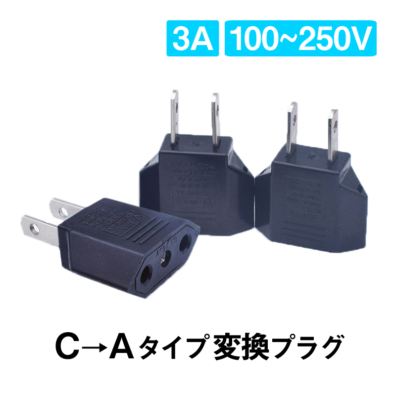 > 日本国内用 Cタイプ→Aタイプ 変換プラグ 3個セット 100-250V 3A 鉄 電源 変換アダプター コンセント 海外 旅行 家電 電化製品 軽量 便利