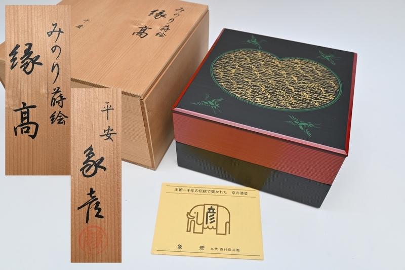 - 縁高 重箱■ 平安象彦 みのり蒔絵[稲穂 米 鶴] 二段重箱 ■ 天然木 未使用 栞 布 木箱入り№9587■