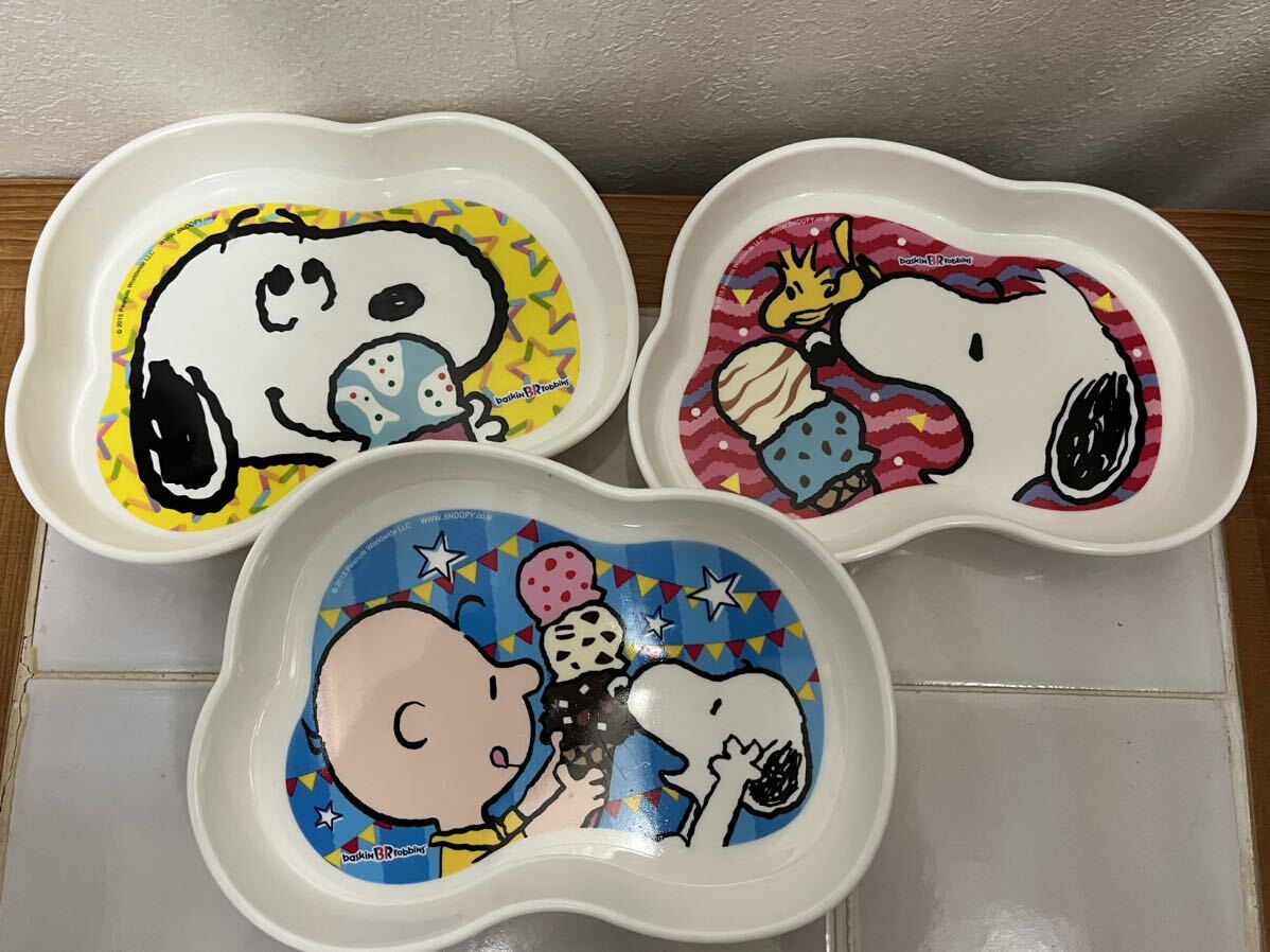 > SNOOPY スヌーピー ポリ食器 3点セット まとめ売り サーティワンアイス ノベルティ 子ども用食器 ポリプロピレン食器 プレート