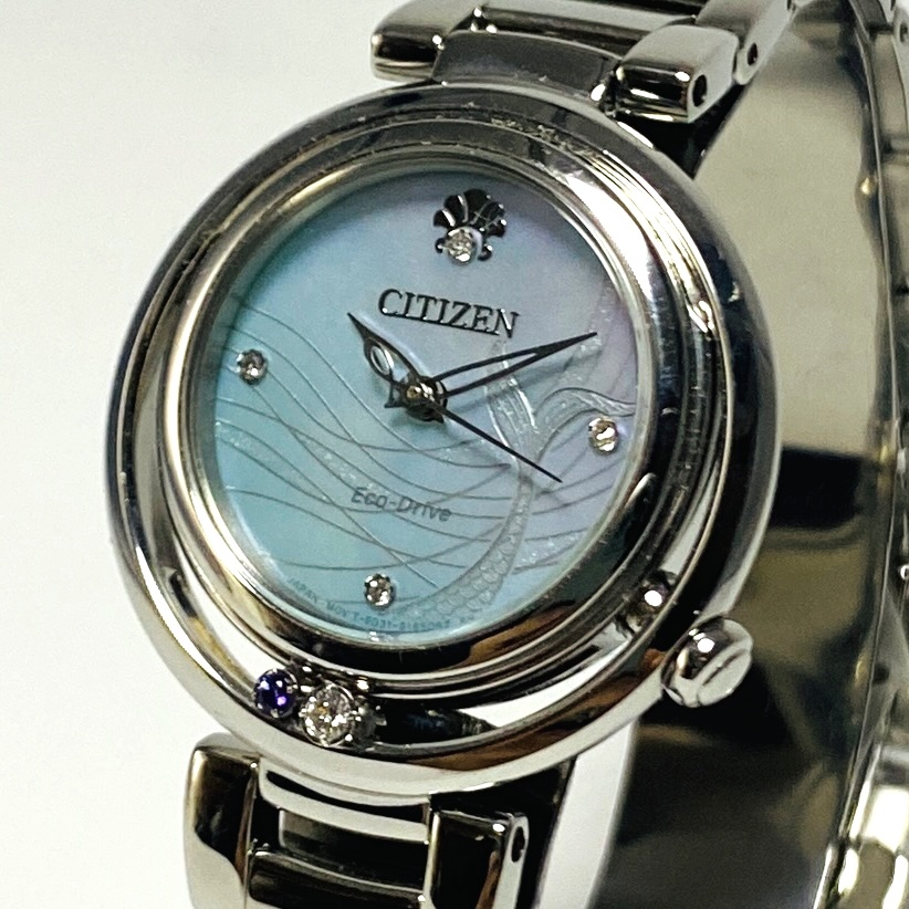 - 【高級時計シチズン】CITIZEN エコドライブ ディズニー アリエル リトルマーメイド 50m防水 ダイヤ 腕時計 mop レディース クリスタル