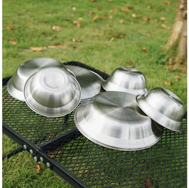 - バーベキュー 野外 艶消し お皿 高級感 ステンレス食器 アウトドア キャンプセット 16点セット ピクニック ケース付属 3-5人 HE460