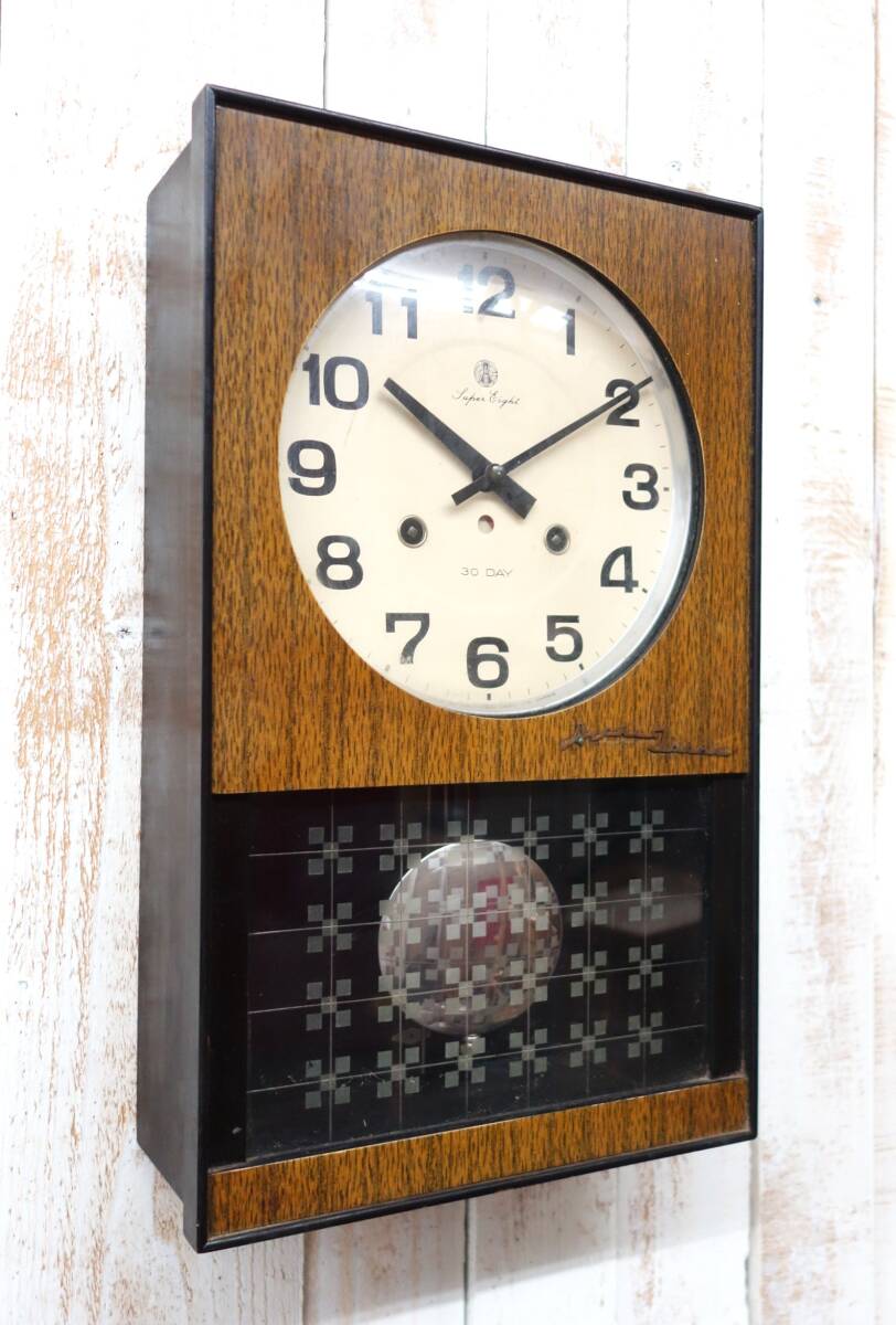- 昭和レトロ 当時物*ジャパニーズモダン *愛知時計電機株式會社*Super Eight 30DAY ボンボン時計 掛け時計 ゼンマイ時計 振り子時計