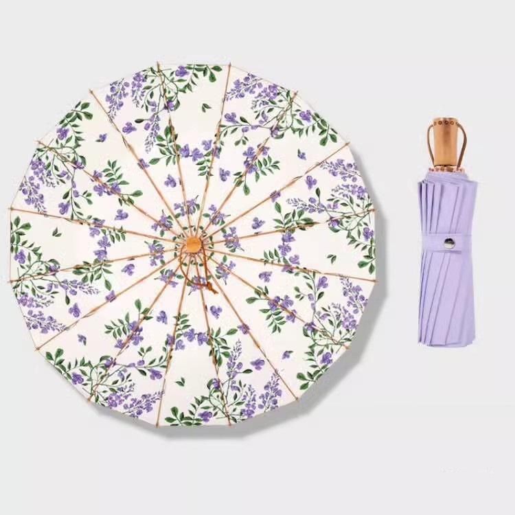 - 傘 レディース 折りたたみ 日傘 完全遮光 軽量 花柄 雨傘 おしゃれ 晴雨兼用 UVカット 16本骨 和柄 99%遮熱 紫外線対策 耐風/パープル