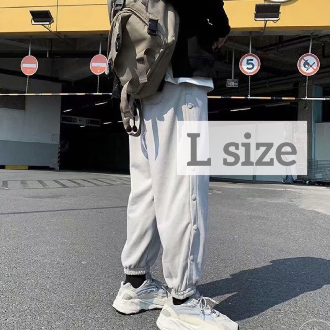- ジョガーパンツ テーパードパンツ サイドボタン ボトムス 学生 スポーツ サークル 体育 作業着 普段着 グレー L