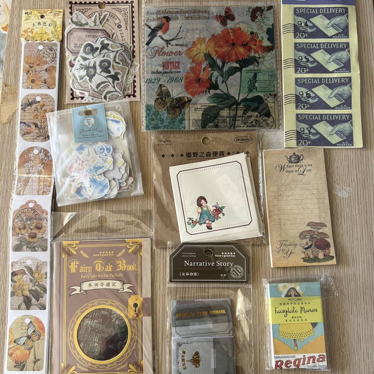 - 紙もの シールステッカー コラージュ 10点セット スクラップブッキング ジャーナル素材 おすそ分けファイル 紙モノ フレークシール