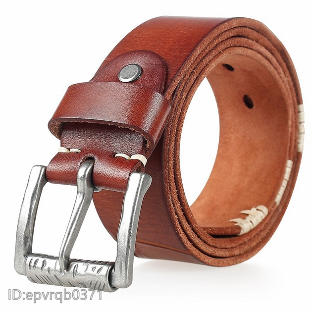 > レザーベルト 新品☆高級 本革牛革 一枚革 メンズベルト ピンバックル式 革ベルト ユーズド加工 紳士 ポンチ付き 長さ調整可能 /ブラウン