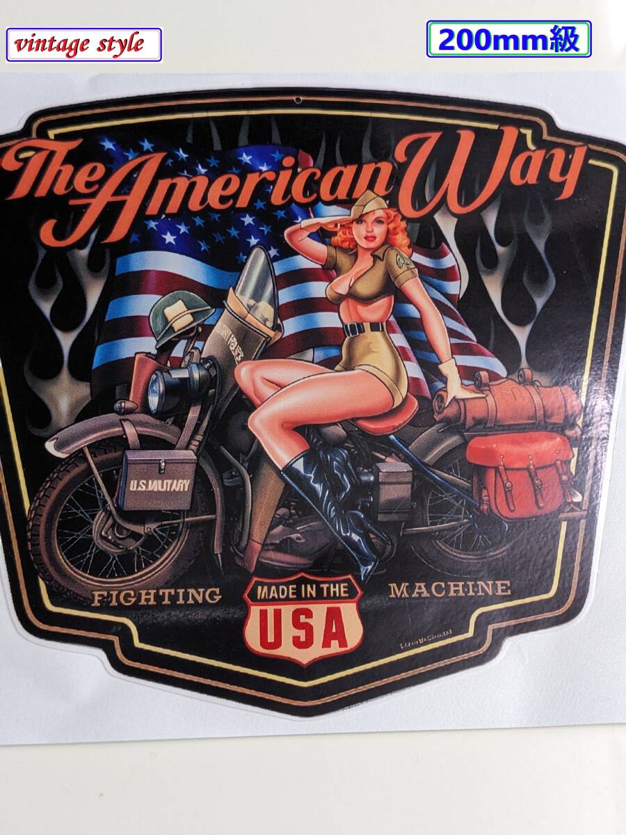 - 【大サイズ200㎜x178㎜USA 軍 敬礼ファイティングマシン】ガレージ ピンナップガール★レトロステッカー・ミリタリーガールステッカー
