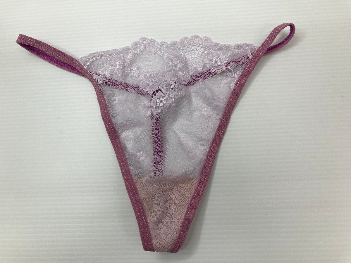 > ラスト1点!Tバックショーツ 下着 合繊スパンデックス ゴム紐 花柄レースシースルー ラベンダー系 M相当★未使用格安!