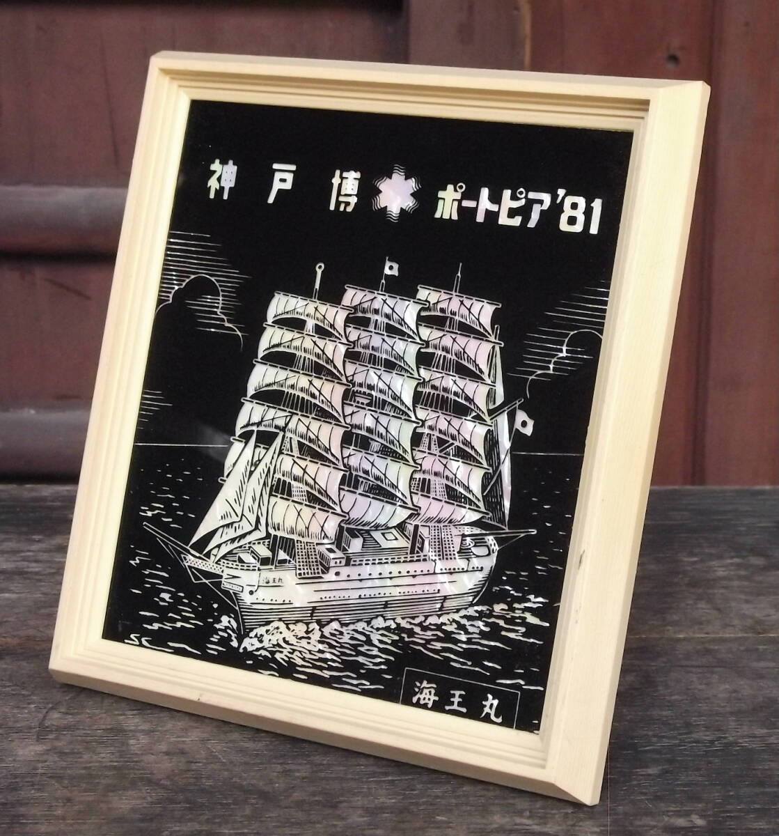 > ポートピア'81 飾り 額装 イラスト 海王丸 切り絵風 帆船 船舶 神戸ポートアイランド博覧会 当時物 万博 神戸博 昭和 レトロ 記念品 グッズ
