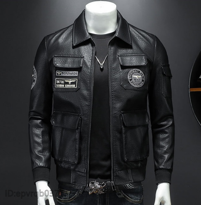 - 新入荷 上質 ライダース メンズ レザージャケット 刺繍 ワッペン フライト ジャケット 高級 革ジャン 紳士 バイクウェア 黒/Lサイズ