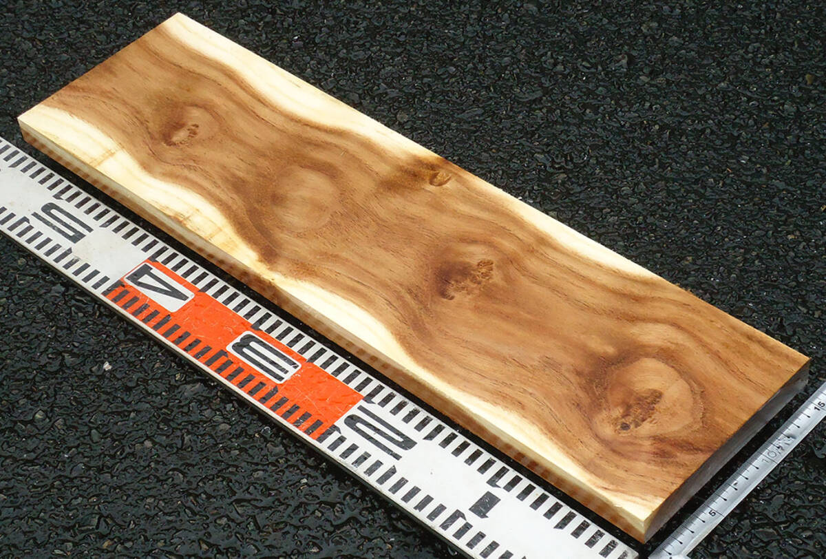 ネムノキとしては希少な蛙杢入り、濃い黒茶色と白身のコントラスト見栄えある素材、また通常のネムノキより非常に硬く良材だと感じます。