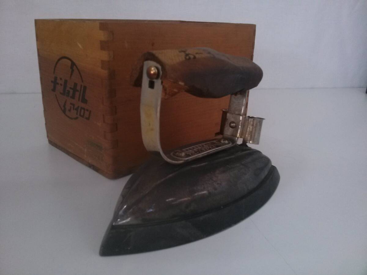 - 【☆TN-585】ジャンク品/昭和レトロ/ナショナル アイロン/蓋なし木製木箱付き/アンティーク/ビンテージ/激レア/骨董家電/松下電器【HK】