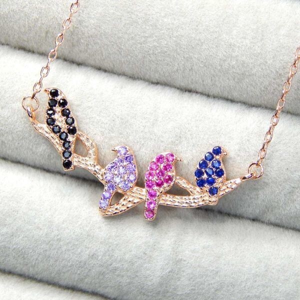 - 残り1点★新品★送料無料 4羽のバード マルチカラーCZダイヤモンドネックレス ジルコニア シルバー925 レディース ピンクゴールド