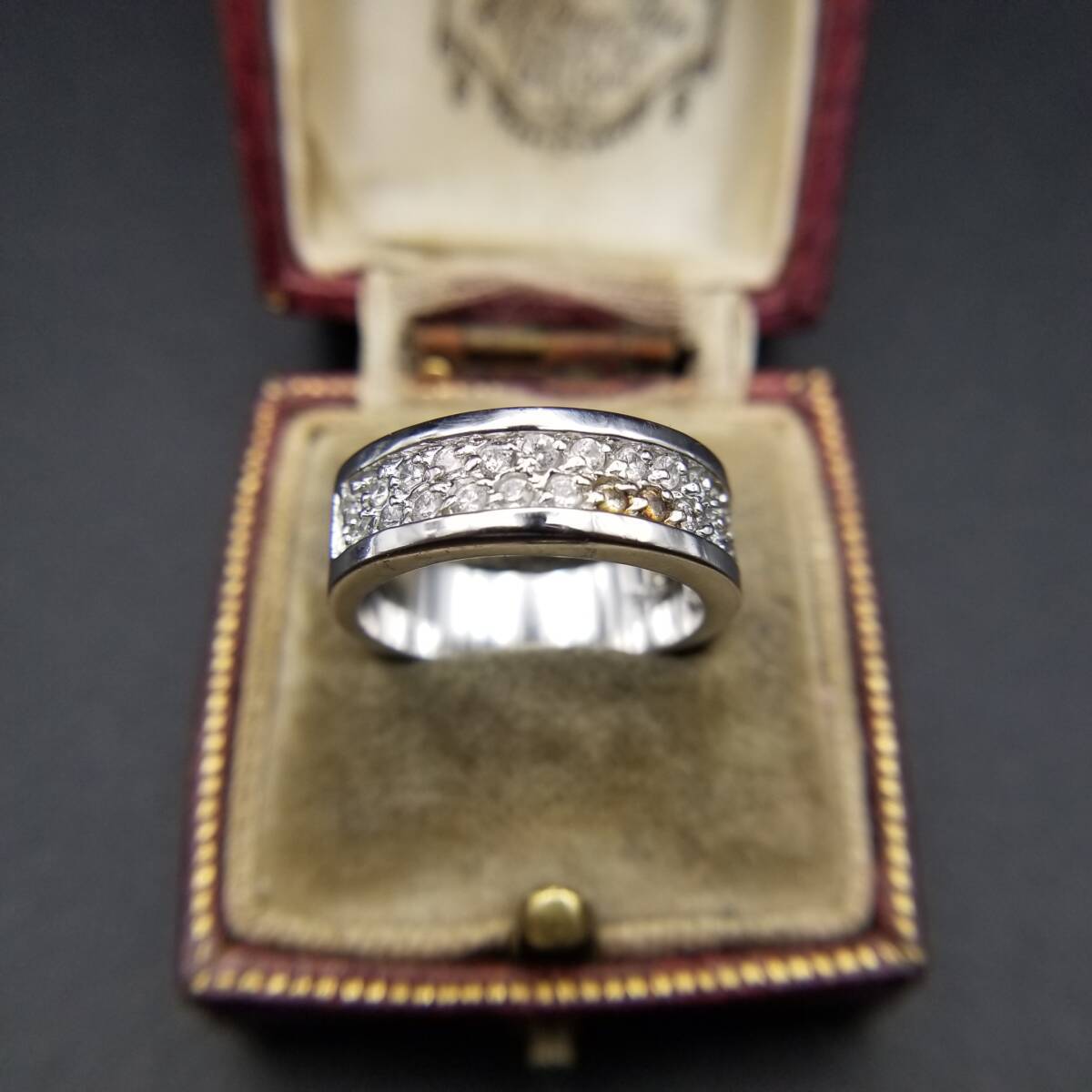 > FAS クリア ラウンド ラインストーン ハーフエタニティ バンド 925 ヴィンテージ シルバー リング 指輪 ジュエリー 輸入 Y14-W