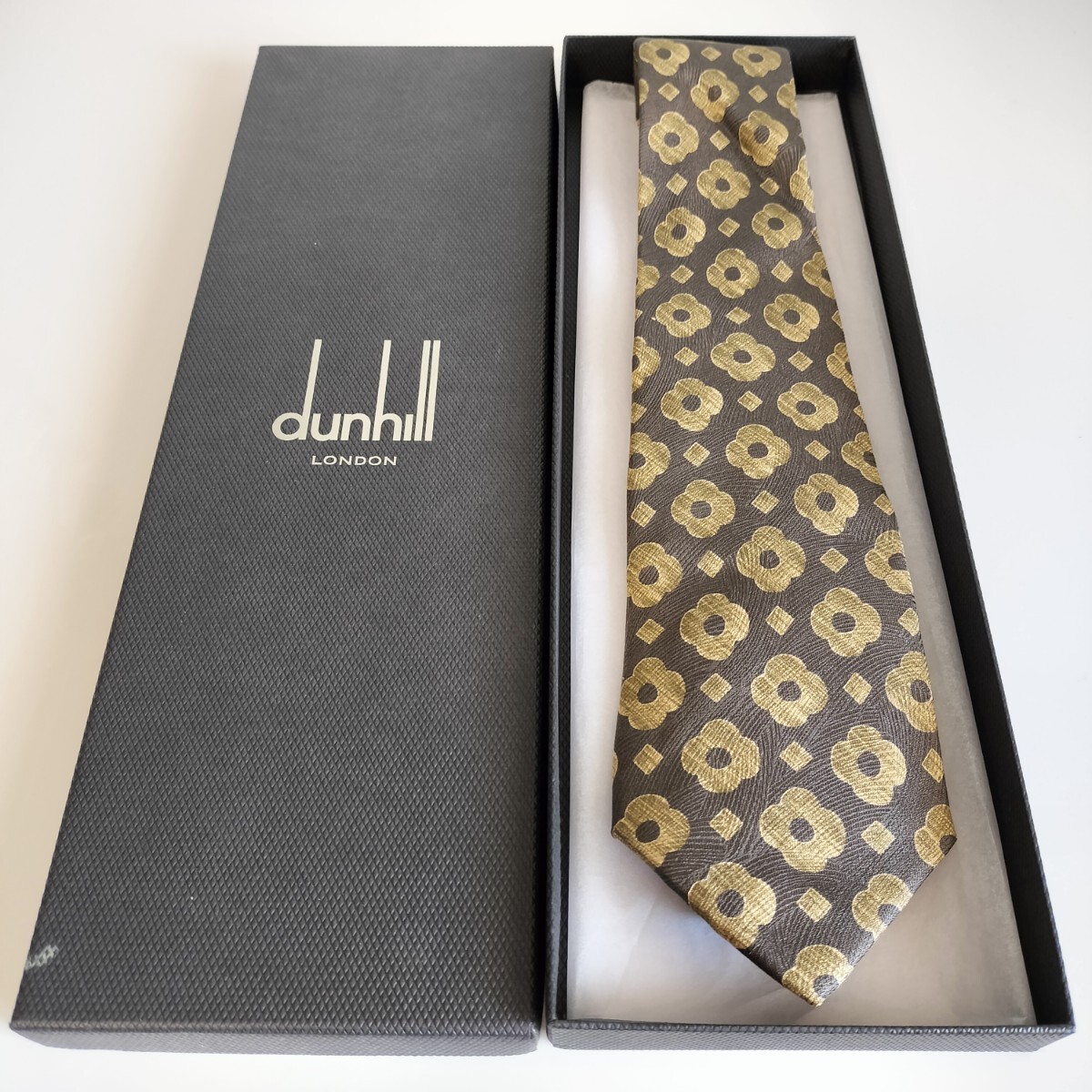 - ダンヒル(Dunhill)黒ブラウン四角花弁ネクタイ