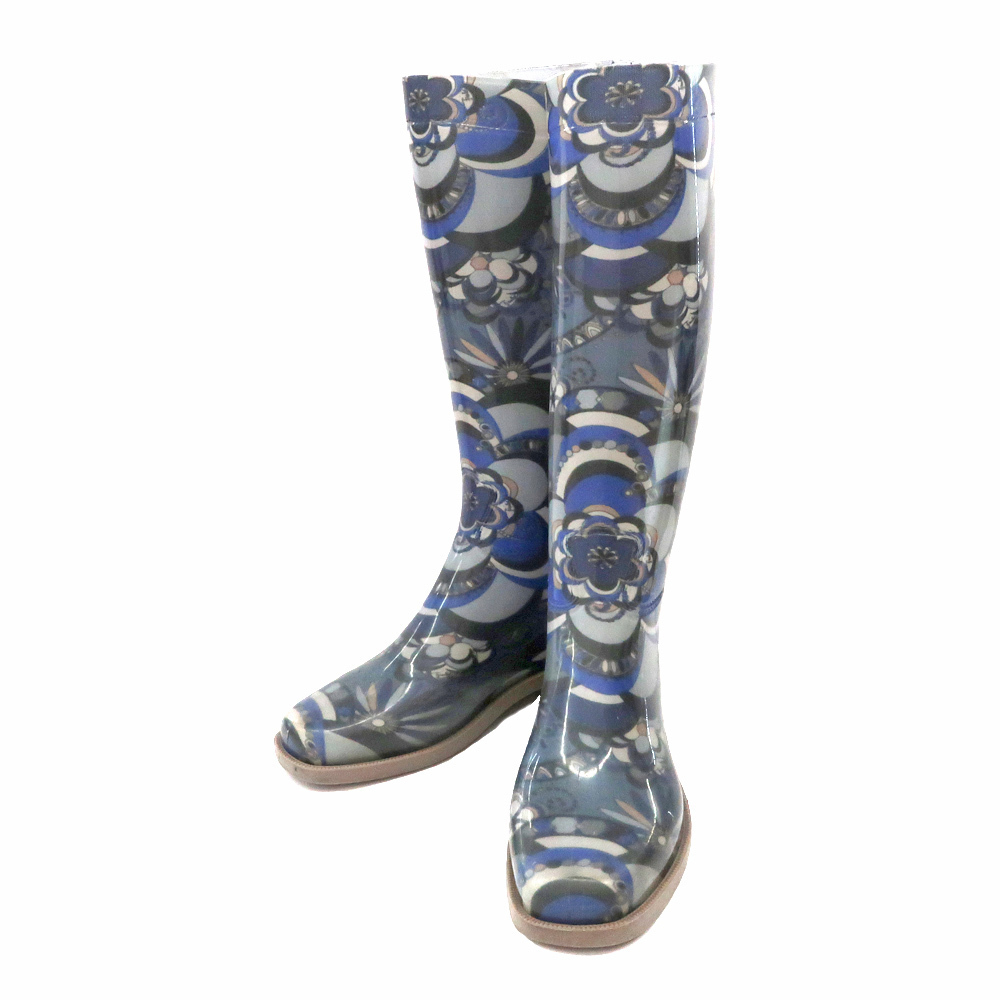 > $ 美品 $ 激レア ■ EMILIO PUCCI ■ エミリオプッチ ■ 花柄 総柄 ビニール製■ レインブーツ 長靴 ■ イタリア製■ グレー系■ 36■ 23cm