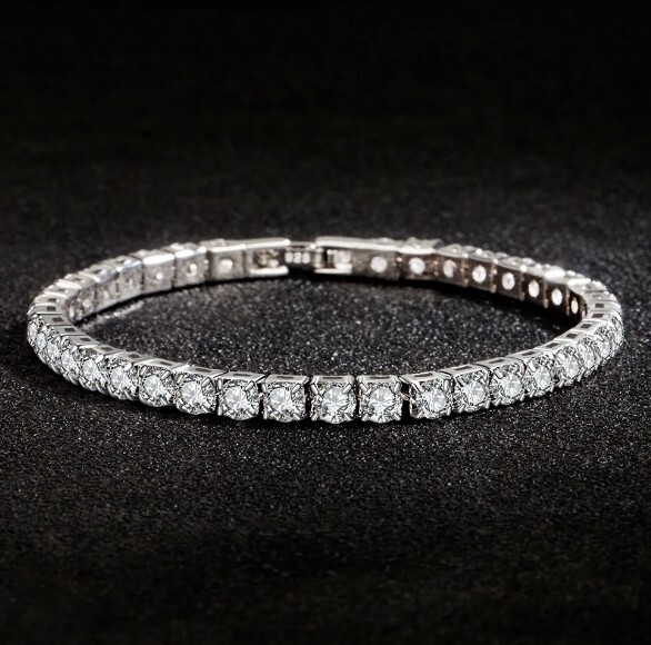 - 【ノーブランド】高級 4ミリ クリスタルブレスレット ゴールド シルバー ブレスレットチェーン ジュエリー【Metal Color: White17cm】