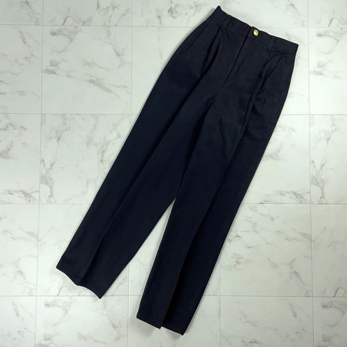 > 美品 VALENZA PO バレンザ・ポー ツータック テーパードスラックスパンツ ボトムス レディース 黒 ブラック サイズ38*OC283