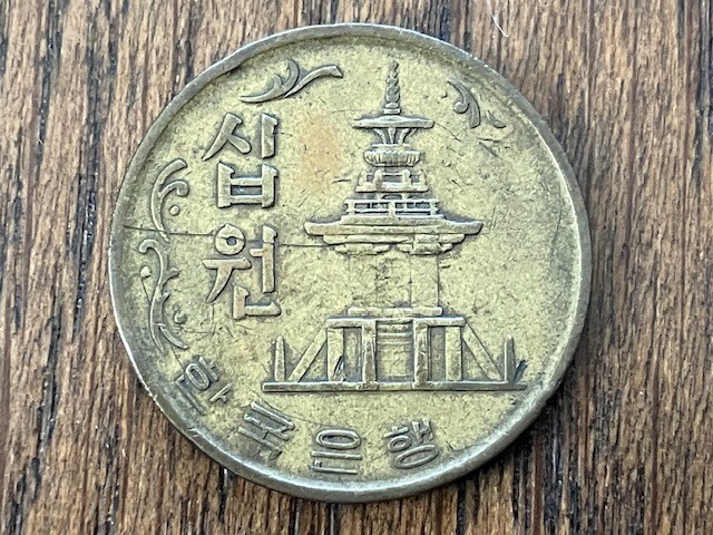 > KOREA 韓国 10ウォン 硬貨 1972年 径2.28cm 厚1.4mm 4g 使用品 DIY ペンダントヘッド コンチョ エンブレム ボタン 送料無料