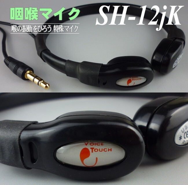 > 新型の咽喉マイク(標準サイズ) SH-12jK 喉元の振動を拾う特殊マイク、有線マイク、発声訓練