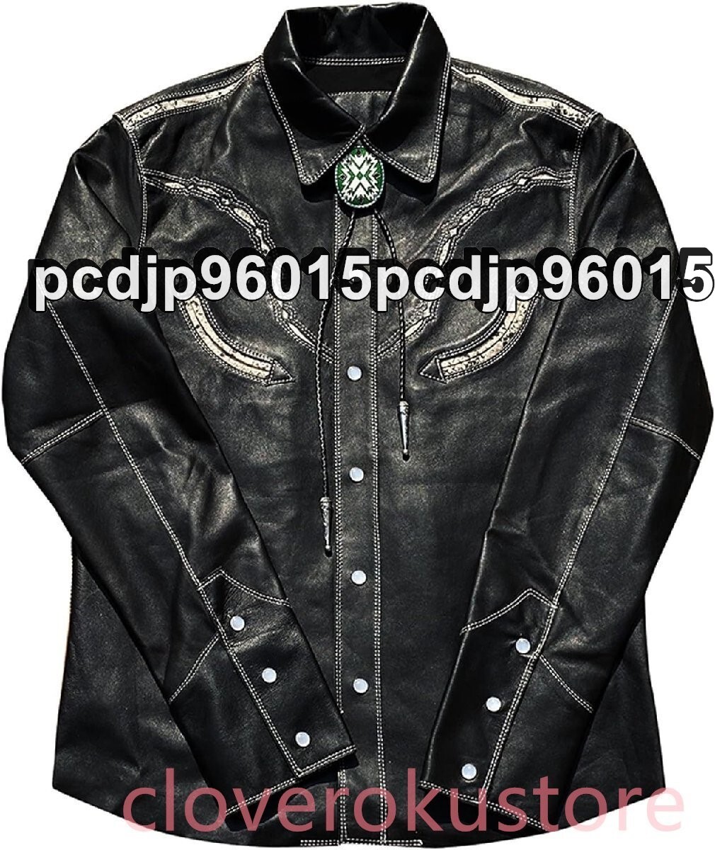 - 本格!アメリカン 豪華 シープスキン レザー ウエスタン シャツ 黒 サイズM~3XL メンズ 本革 パイソン ロカビリー ヘビ柄 パイソン