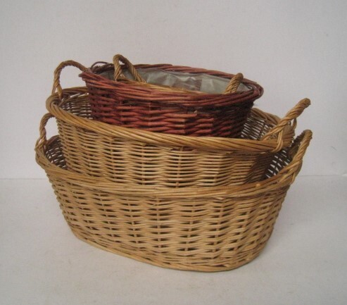 - ラタンバスケット まとめて4個 手提げ付き 籐かご 花入れ 小物入れ /22N4.18-26