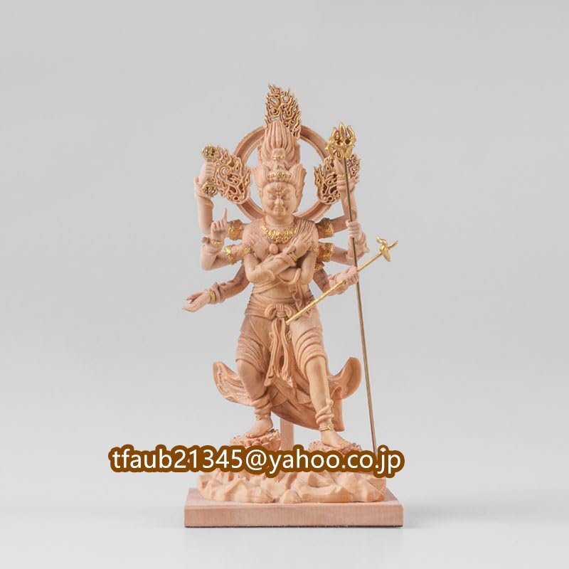 > 【ケーリーフショップ】木彫りの仏像【軍荼利明王(ぐんだりみょうおう)】 五大明王之一 柘植 金泥仕様 高さ13cm (軍荼利明王)