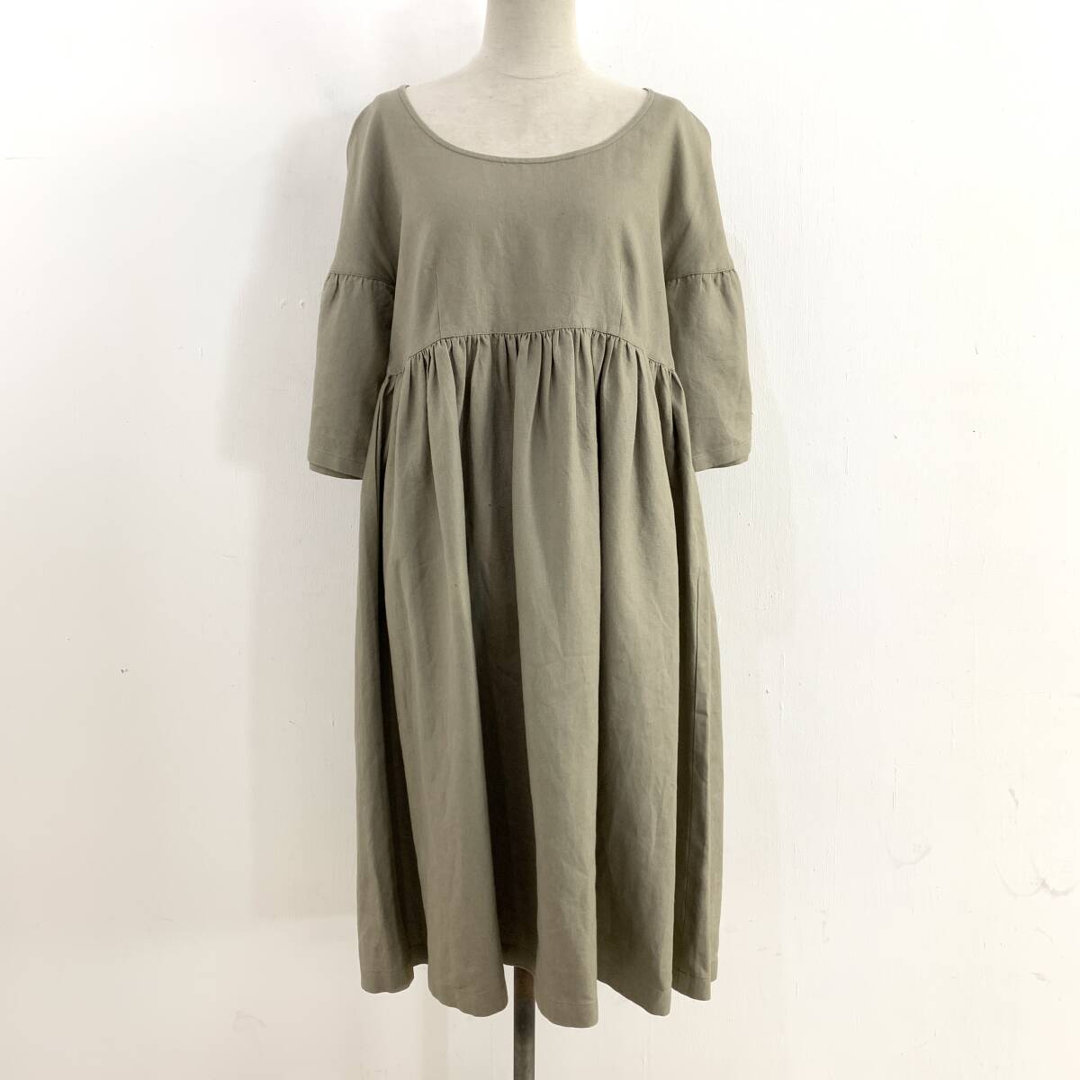 > ☆SPICK and SPAN スピックアンドスパン 麻100% リネン ワンピース カーキ系 古着【送料一律/同梱可能】G