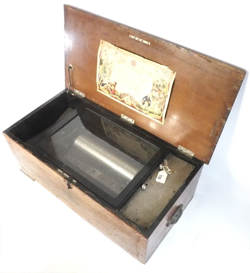 - 海外アンティーク ビクトリアンスタイル 動作確認済 「寄木細工木箱 大型シリンダー式オルゴール」1890年代 SMN604