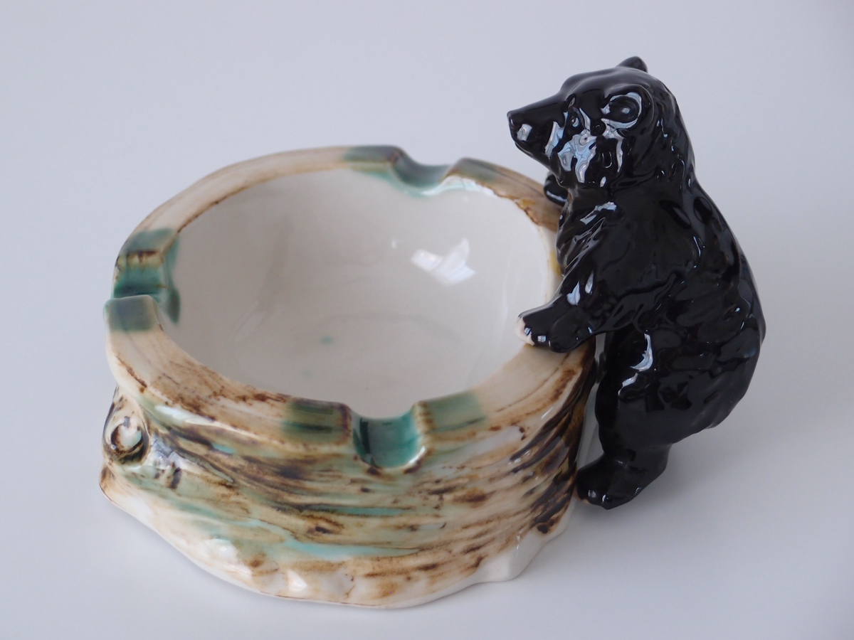 - ●陶器製 北海道 洞爺湖 熊 灰皿●当時物 クマ 民芸品 昭和レトロ 木彫熊 八雲 農民美術 お土産