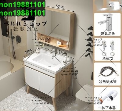 > 洗面化粧台 シンク化粧台キャビネット付き 洗面台 2枚扉 一面鏡 セラミック容器シンク冷水&温水蛇口 ロッカー付 壁掛 シンク付き (60cm)
