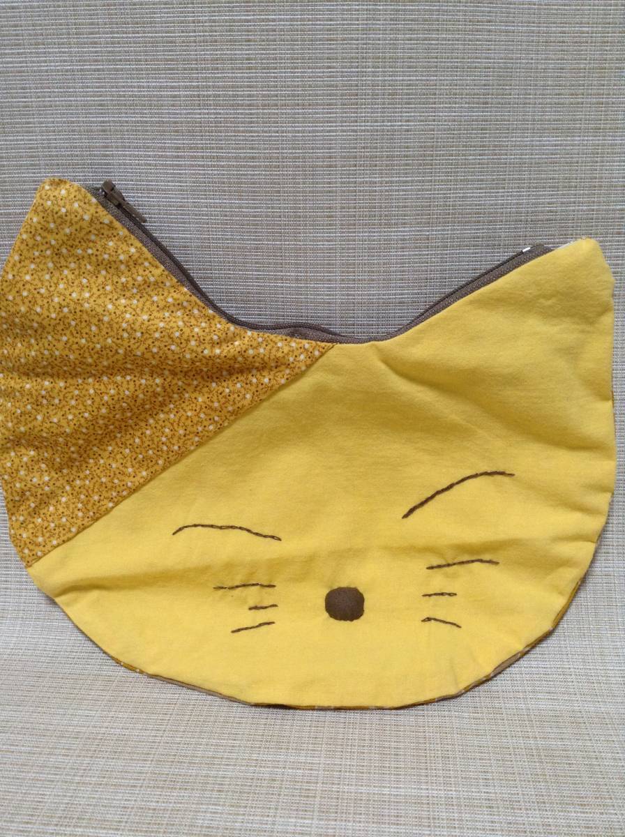 ★ハンドメイド★ねこの顔型のポーチ 手作り 猫 小物入れ,袋