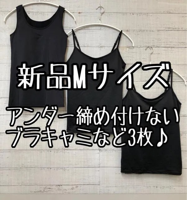 - 新品☆Mサイズ♪黒系アンダー締め付けないブラキャミなど3枚セット♪☆a929