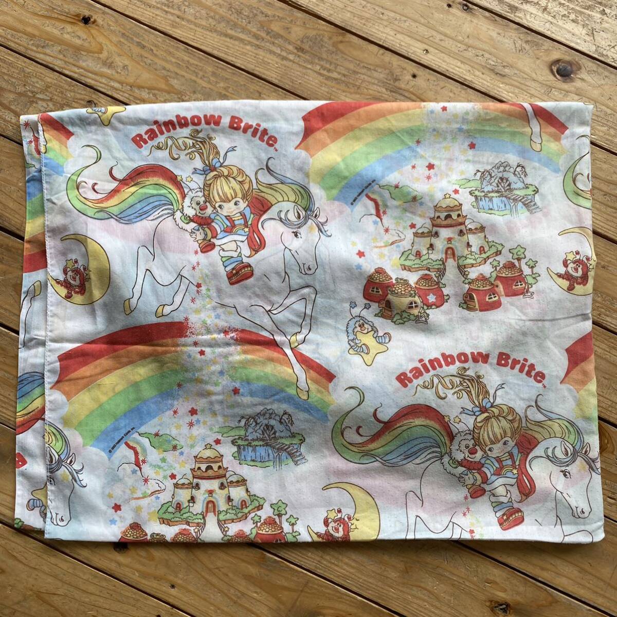 > USAヴィンテージ レインボーブライト Rainbow Brite ベッドシーツ キャラクタ リメイク生地 素材 ボックスシーツ アメリカ仕入 総柄 B2007