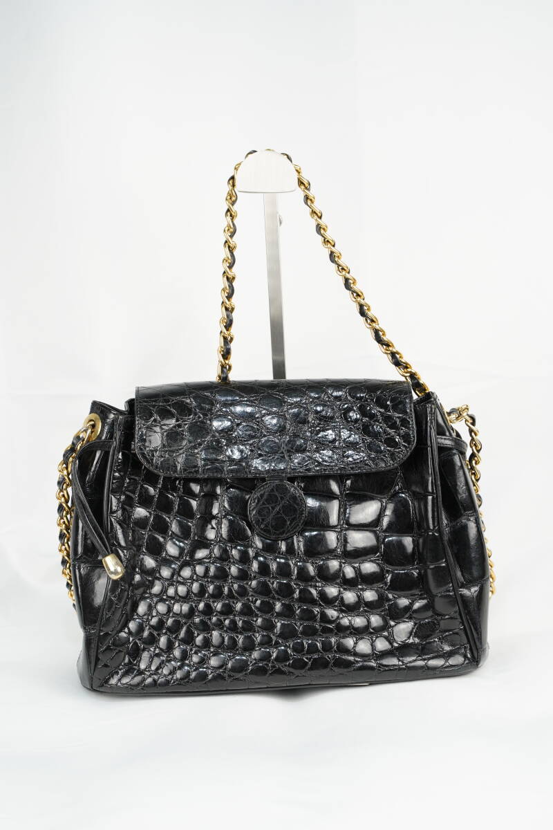 - イタリー製 クロコ クロコダイル ワニ革 エキゾチックレザー チェーンショルダーバッグ バッグ 鞄