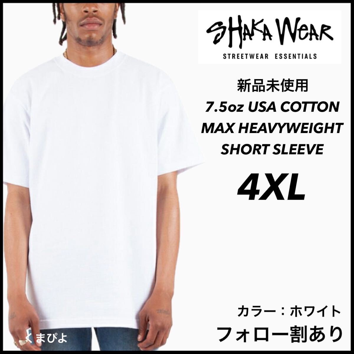 - 新品 シャカウェア 7.5oz ヘビーウエイト 無地 半袖Tシャツ 白 ホワイト 4XL サイズ SHAKAWEAR