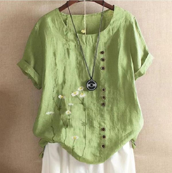 - 人気推薦 / 夏新作 ブラウス プリント 花柄 半袖 飾りボタン インナー トップス レディース 大きいサイズ きれいめ チュニック / グリーン