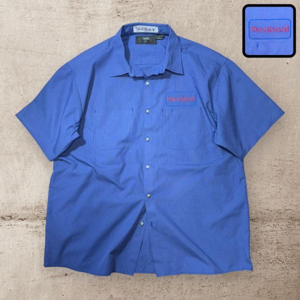 > CINTAS 半袖ワークシャツ XL ブルー系 チェック柄 the abigail刺繍 シンタス 古着 クリーニング プレス済み w1274