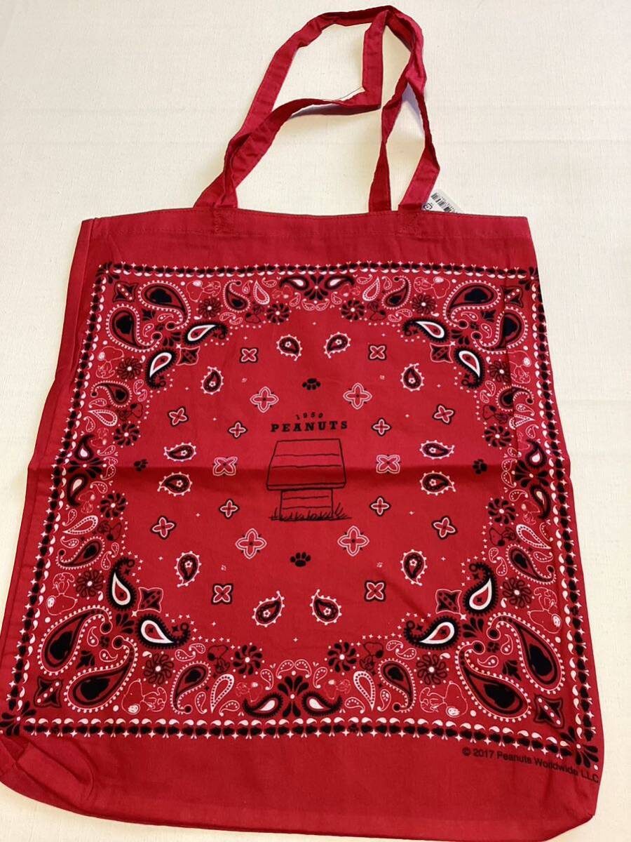 - PEANUTS ピーナッツ◆SNOOPY スヌーピー バンダナ柄トートバッグ◆長期保管・デッドストック・未使用品◆タグ付◎エコバッグ◆ 赤