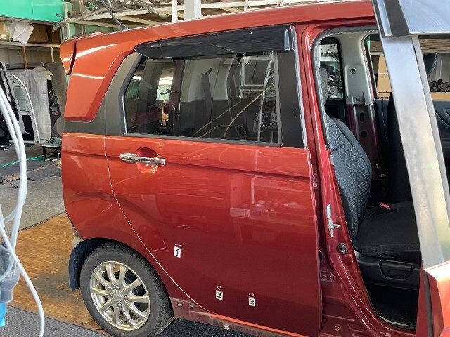 - 34924☆部品取☆Nワゴンカスタム N WGN JH1/JH2☆右リアドア☆YR610M オレンジM【67510-T6G-000ZZ】