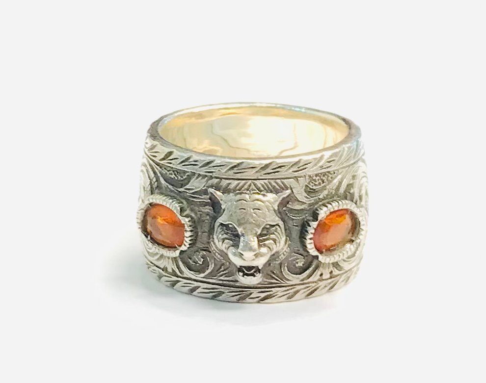 - GUCCI グッチ キャットヘッド シルバーリング カラーストーン 22号 qoj.YSY03